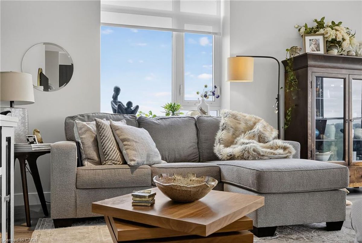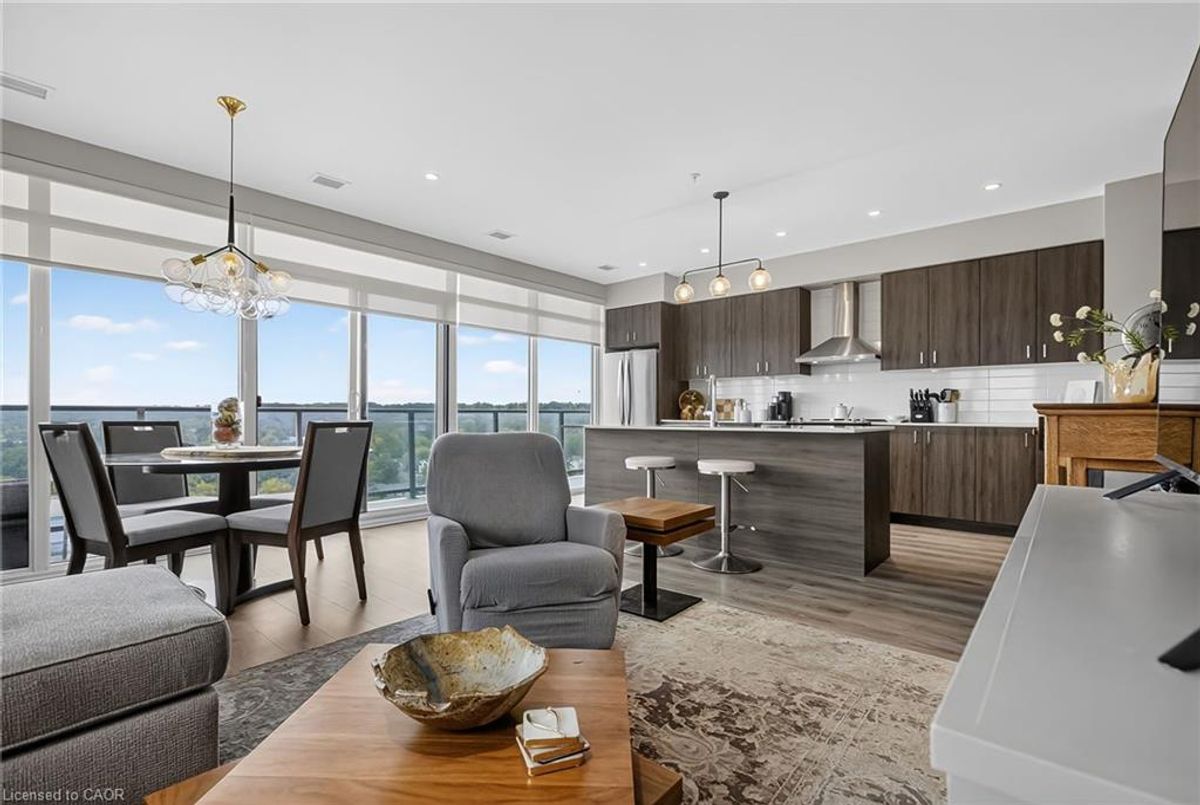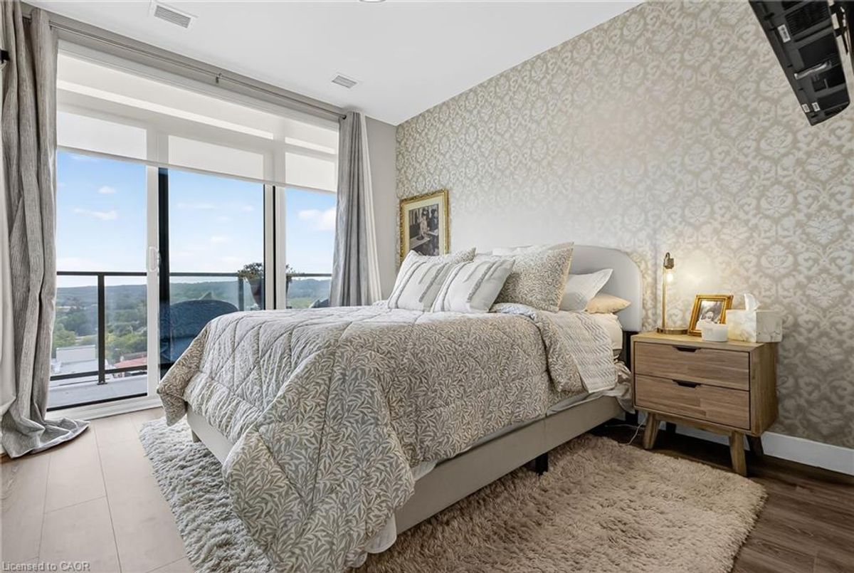 Located in the heart of historic downtown Galt, this beautiful condo is part of thevibrant Gaslight District—a new center for residential, commercial, retail, dining,art, and culture. Here, life, work, and leisure come together to create anunparalleled living experience. This stunning unit has amazing SOUTHWEST exposure with unobstructed views and is bright all day long with stunning sunrises and sunsets! This impressive unit boasts nine-foot smoothceilings, potlites, custom roller shades on remotes, custom mirrors, luxury flooring, and has been recently painted in neutral Benjamin Moore shadesthroughout. The gorgeous open kitchen has modern cabinetry, quartz countertops, atile backsplash, an oversized island with an under-mount sink and chrome hardwareand faucet. A Custom dining room chandelier and pendant lighting were recentlyadded. It is complete with SS appliances. The open-concept design flows to agenerous living and dining area, ideal for entertaining. Floor-to-ceiling windowsand access to a large balcony let natural light flood the space. The primary suiteoffers wall to wall full sized patio doors leading to the balcony, as well as wallto wall closets, and a luxurious four-piece ensuite with dual sinks and a walk-inshower. A second bedroom with floor-to-ceiling windows, a four-piece bath with atub and shower combo and two full closets and in-suite laundry complete thispremium unit. Residents enjoy stunning amenities to include luxurious hotel-stylelobby, secure video-monitoring, a fitness centre and yoga studio, large TV, acatering kitchen, a private dining room, and a cozy library. The lounge opens ontoa spacious outdoor terrace overlooking Gaslight Square, featuring multiple seatingareas, pergolas, fire pits, and a BBQ area for outdoor relaxation. Simply Stunning! ...