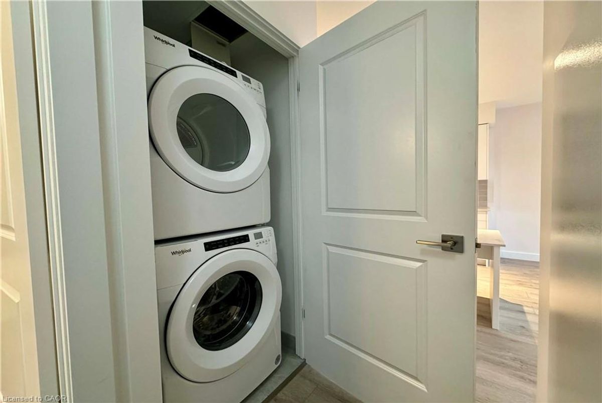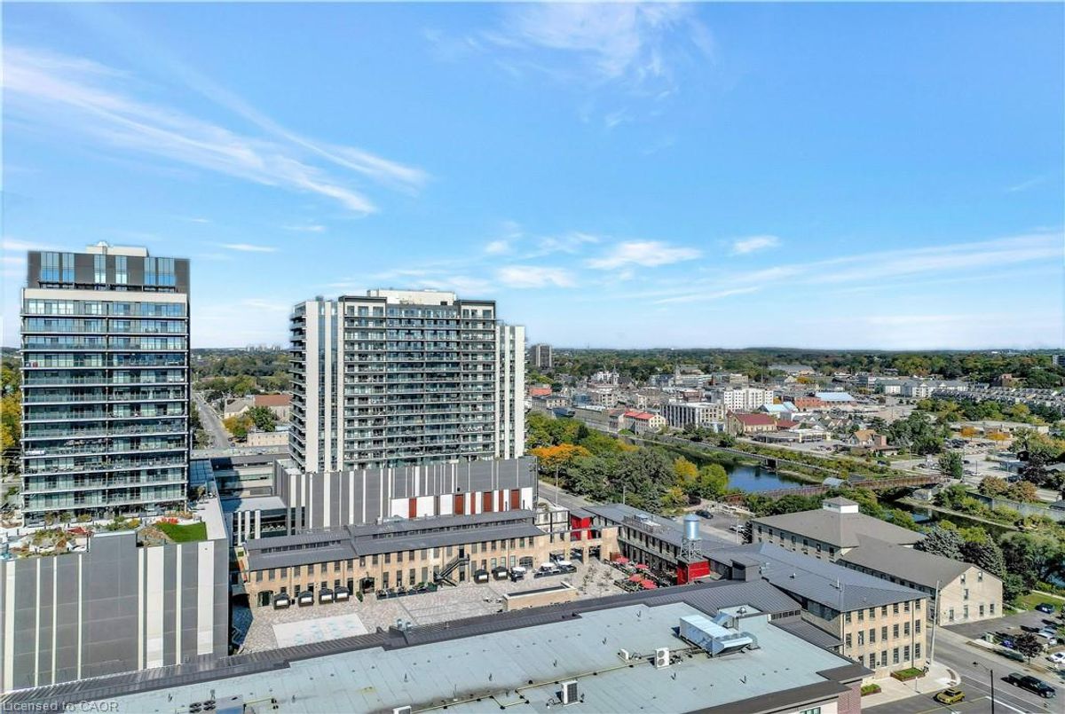 This well-maintained 2-bedroom, 2-bathroom condo at 712–15 Glebe St is located in the highly sought-after Gaslight District, Cambridge’s vibrant hub for dining, entertainment, and culture. The unit features 9-foot ceilings and an open-concept kitchen and dining area with upgraded appliances, ideal for everyday living and entertaining. Large windows throughout the home provide abundant natural light and showcase beautiful city views. Both bedrooms are generously sized, with a walk-in closet offering excellent storage. In-suite laundry and quality finishes throughout add comfort and convenience. A spacious open balcony, accessible from both the living room and one of the bedrooms, offers panoramic city views and a great outdoor extension of the living space. One underground parking spot is included. Residents enjoy access to Gaslight Condos amenities, including an exercise room, games room, study/library, and an expansive outdoor terrace with pergolas, fire pits, and BBQ areas overlooking Gaslight Square. Ideally situated in the heart of the Gaslight District, this unit offers a comfortable and connected lifestyle in one of Cambridge’s most desirable communities.