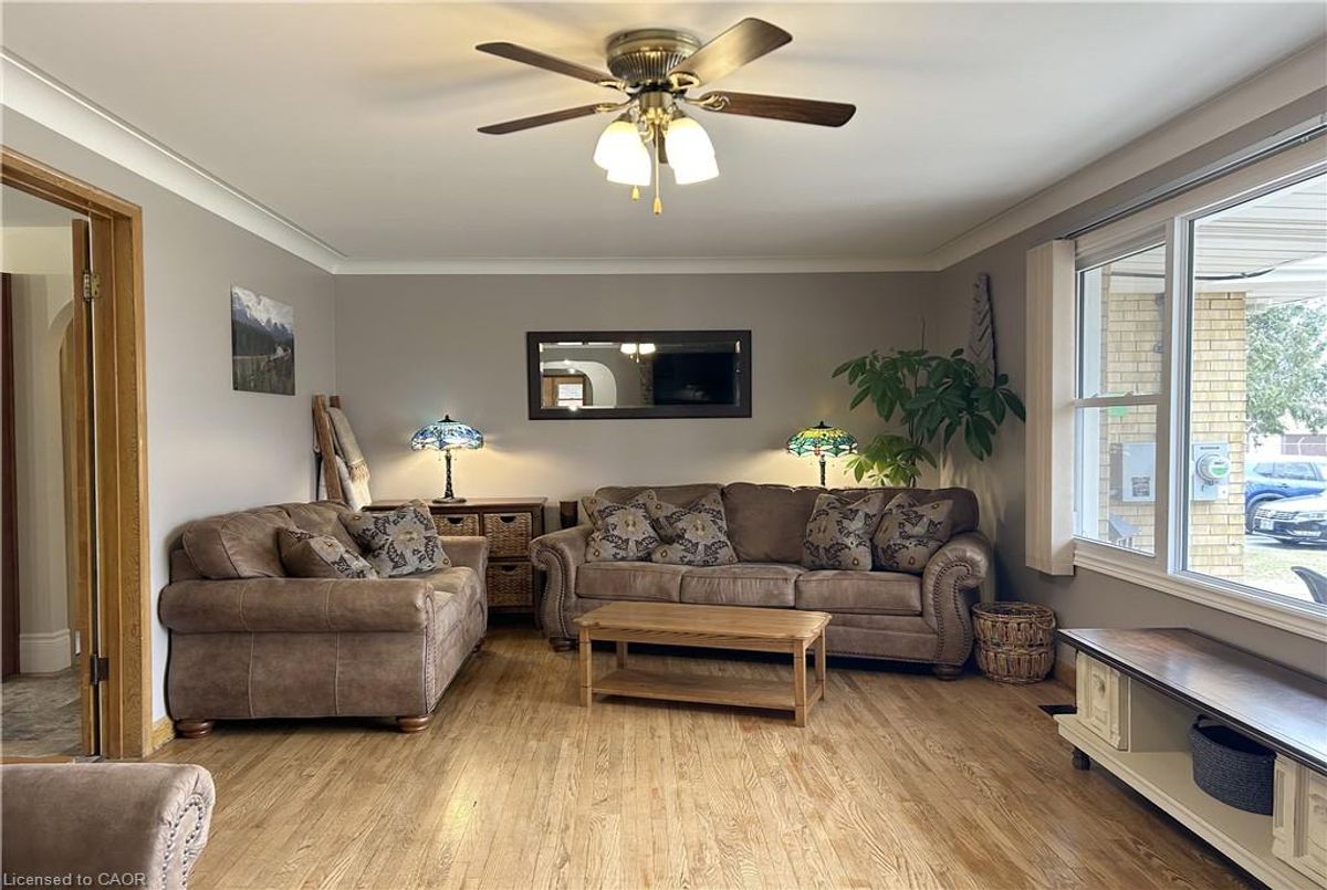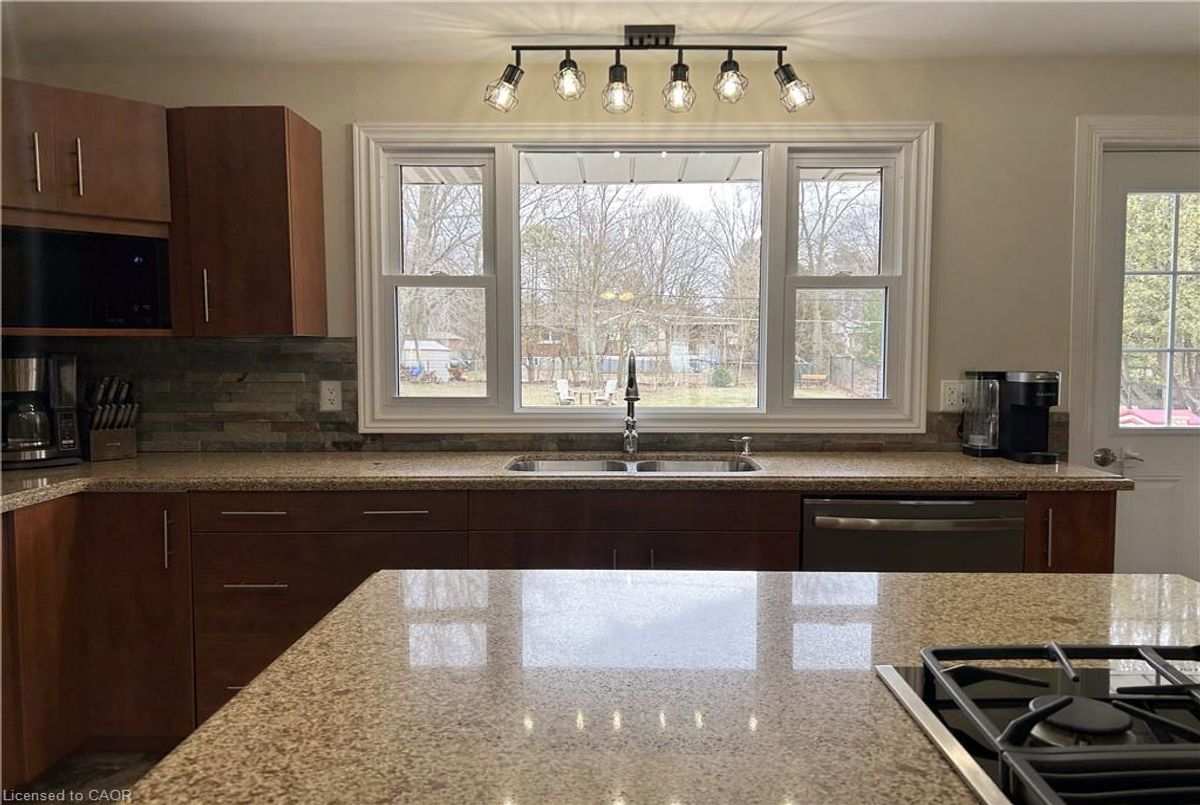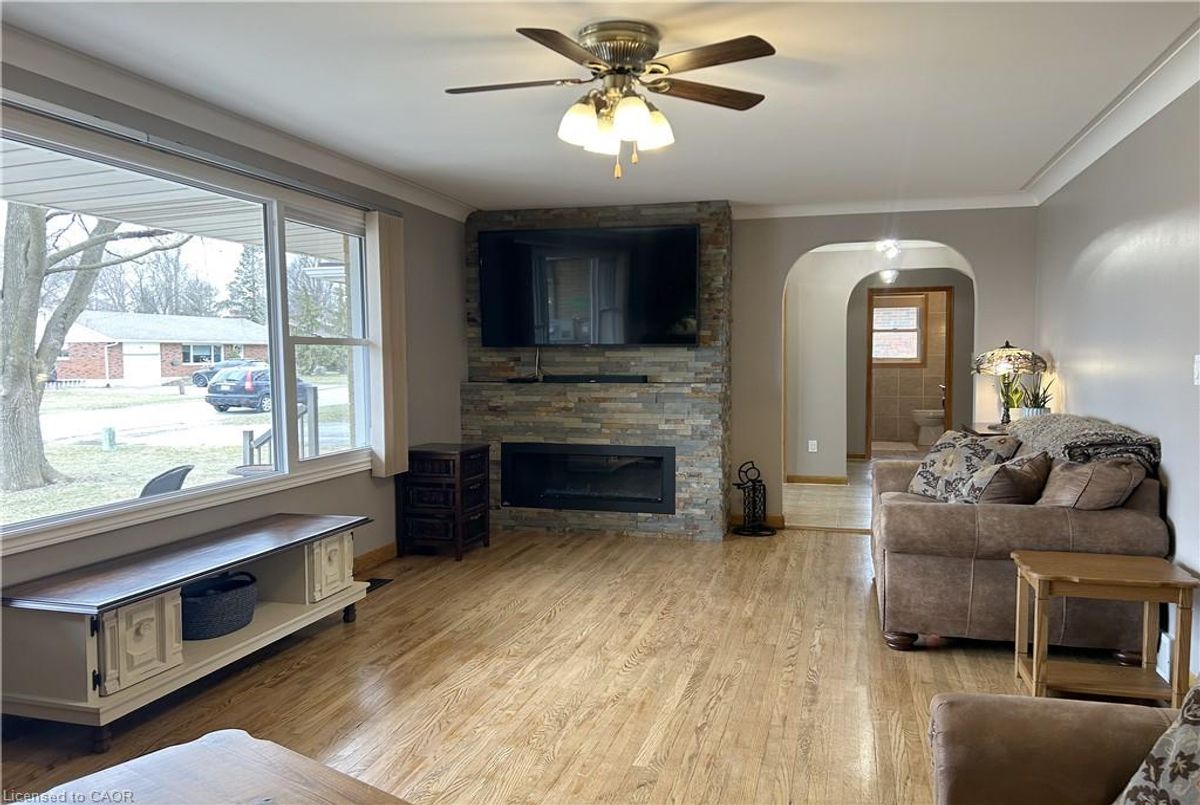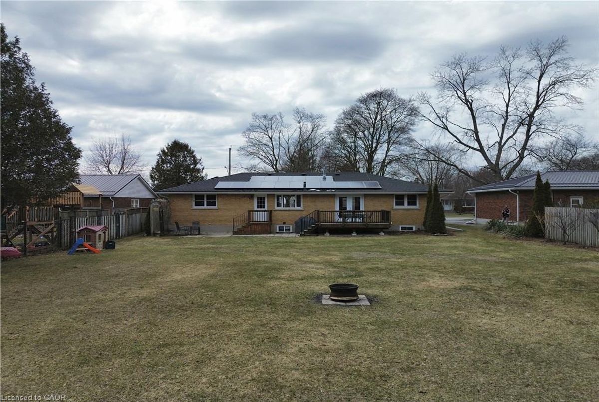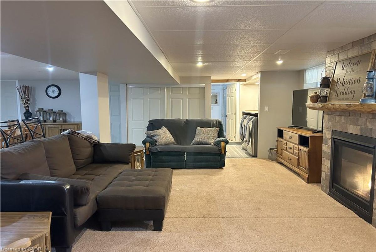 Welcome to this well-maintained bungalow located in a family-friendly neighbourhood in Waterford. From the moment you step inside, you’ll appreciate the bright and welcoming layout designed for comfortable everyday living. The main floor features a spacious living room highlighted by a cozy gas fireplace and a large bay window that fills the space with natural light. The living area connects to the dining space, where double doors lead to a 9’x13’ back deck, creating the perfect setting for relaxing evenings or outdoor entertaining.The kitchen offers both style and functionality with a center island, granite counter tops, and generous amount of cabinetry, delivering both plenty of storage and practical meal prep space.. Three well-sized bedrooms and a 4-piece bathroom finishes the main level. The attached garage is equipped with a 60-amp hydro panel, making it an excellent space for hobbyists, workshop use, or anyone requiring additional electrical capacity. The finished lower level expands the living space with a large recreation room featuring a second gas fireplace—ideal for movie nights, family gatherings, or a cozy retreat during the cooler months. Two additional bonus rooms provide flexible space for a home office, gym, hobby room, or guest accommodations. This level also includes a 3-piece bathroom renovated in 2026, along with a convenient utility and laundry area and plenty of storage. Step outside to a spacious backyard offering a lot of room to enjoy outdoor activities, gardening, or summer barbecues. The yard is fenced and includes a 9x11 storage shed for added convenience.