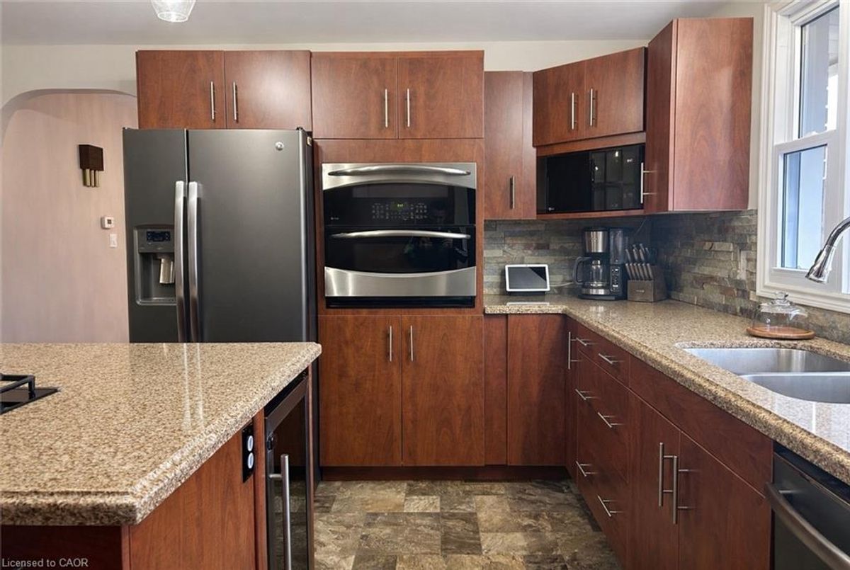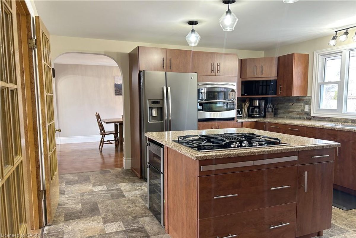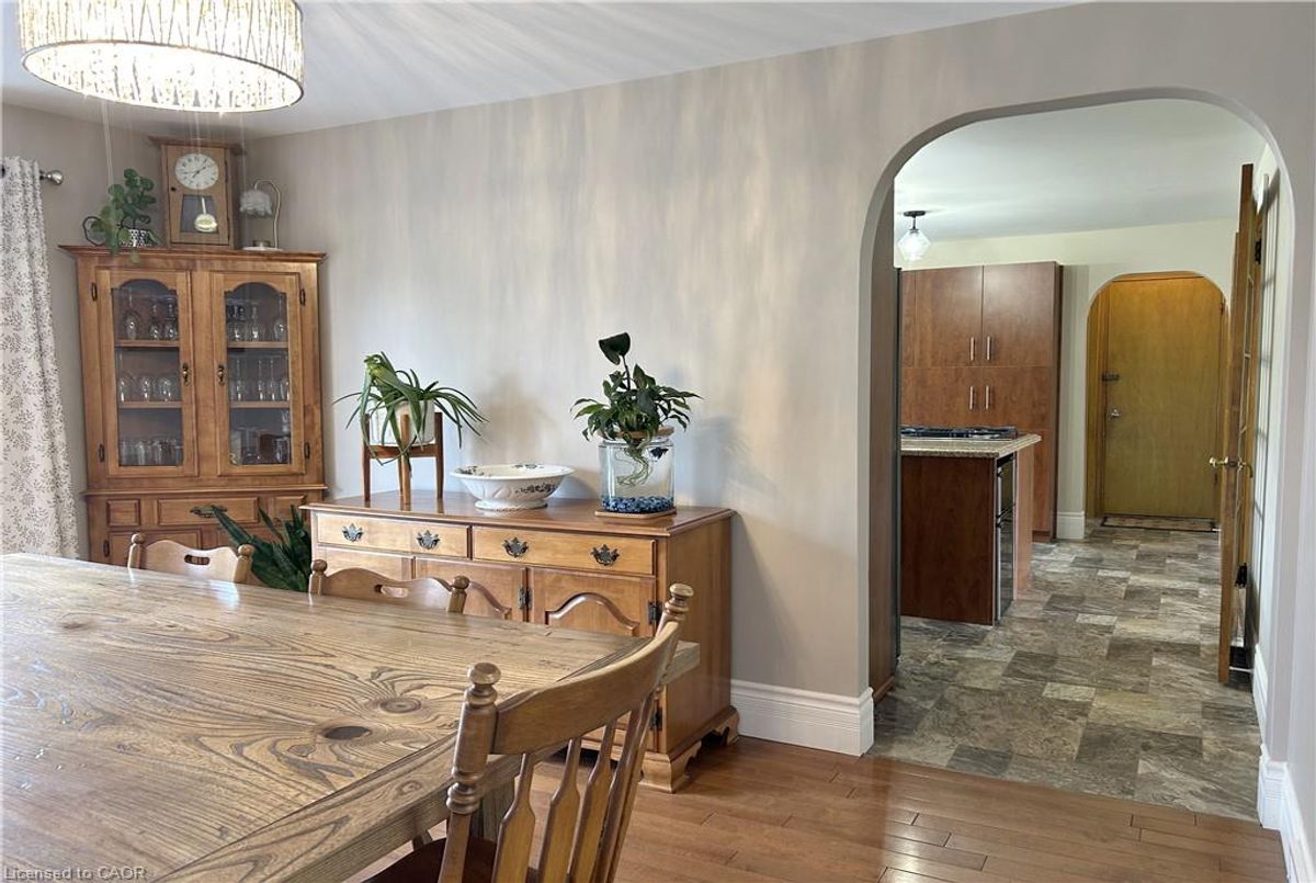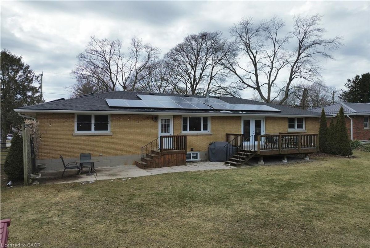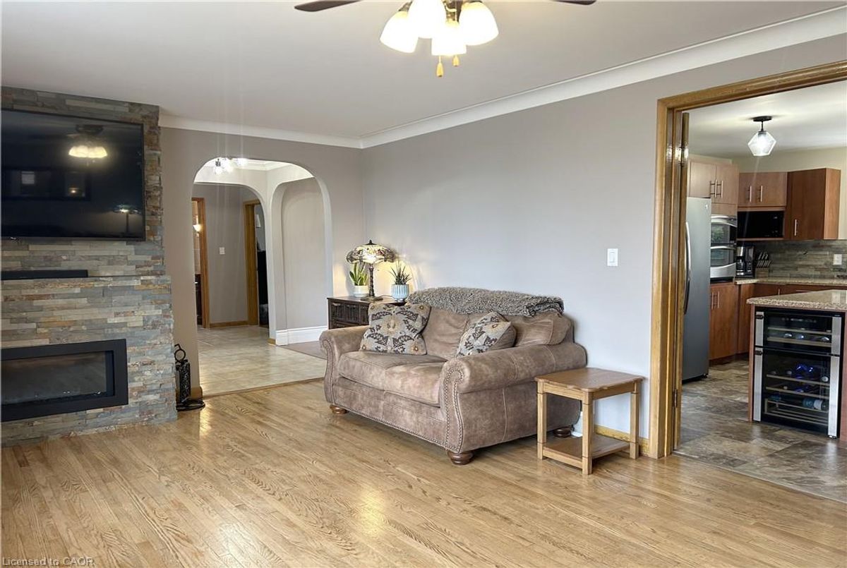 Welcome to this well-maintained bungalow located in a family-friendly neighbourhood in Waterford. From the moment you step inside, you’ll appreciate the bright and welcoming layout designed for comfortable everyday living. The main floor features a spacious living room highlighted by a cozy gas fireplace and a large bay window that fills the space with natural light. The living area connects to the dining space, where double doors lead to a 9’x13’ back deck, creating the perfect setting for relaxing evenings or outdoor entertaining.The kitchen offers both style and functionality with a center island, granite counter tops, and generous amount of cabinetry, delivering both plenty of storage and practical meal prep space.. Three well-sized bedrooms and a 4-piece bathroom finishes the main level. The attached garage is equipped with a 60-amp hydro panel, making it an excellent space for hobbyists, workshop use, or anyone requiring additional electrical capacity. The finished lower level expands the living space with a large recreation room featuring a second gas fireplace—ideal for movie nights, family gatherings, or a cozy retreat during the cooler months. Two additional bonus rooms provide flexible space for a home office, gym, hobby room, or guest accommodations. This level also includes a 3-piece bathroom renovated in 2026, along with a convenient utility and laundry area and plenty of storage. Step outside to a spacious backyard offering a lot of room to enjoy outdoor activities, gardening, or summer barbecues. The yard is fenced and includes a 9x11 storage shed for added convenience.